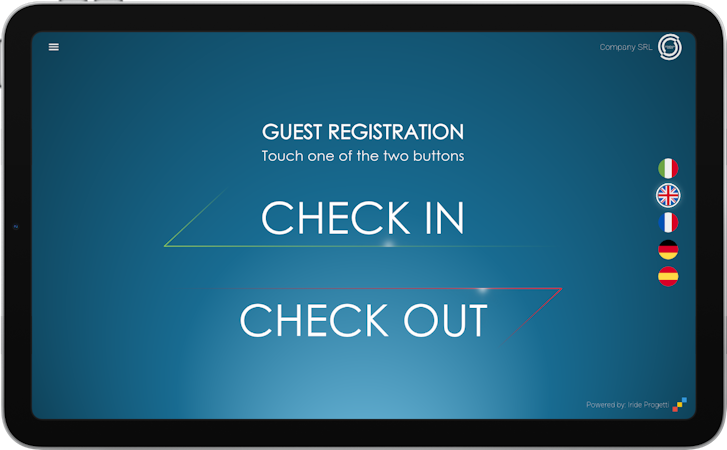 The solution captures essential guest information including first name, last name, company affiliation and other customizable data fields. The interface offers multilingual support for Italian, English, French, German and Spanish to accommodate international visitors. Privacy compliance features permit presentation of customizable informational text and collection of digital visitor signatures as part of the registration workflow.