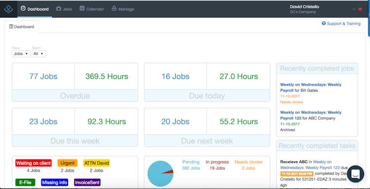 What if you could lead your business without falling behind? Jetpack Workflow is a cloud-based workflow management tool that helps firms standardize, track and automate their processes so they can complete more work and prevent tasks from falling through the cracks. Our software reduces the administrative work for accountants, bookkeepers and CPAs by helping them standardize firm procedures. Serving over 16K customers globally, we help firms of every size meet deadlines, track team progress, and grow your practice without worry.