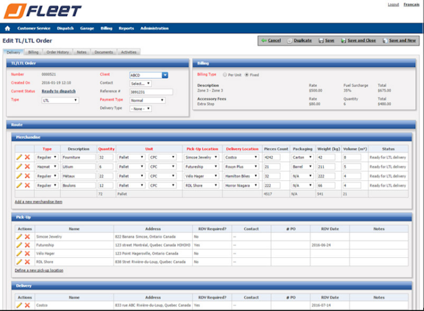 JFleet from Jarca is a cloud-based transportation management solution designed for TL, LTL, and Intermodal road transport companies. JFleet is a web-based solution that offers a wide array of features to assist businesses in streamlining routine operations such as dispatching orders, tracking vehicles, communicating with drivers and sending invoices to the customers.
