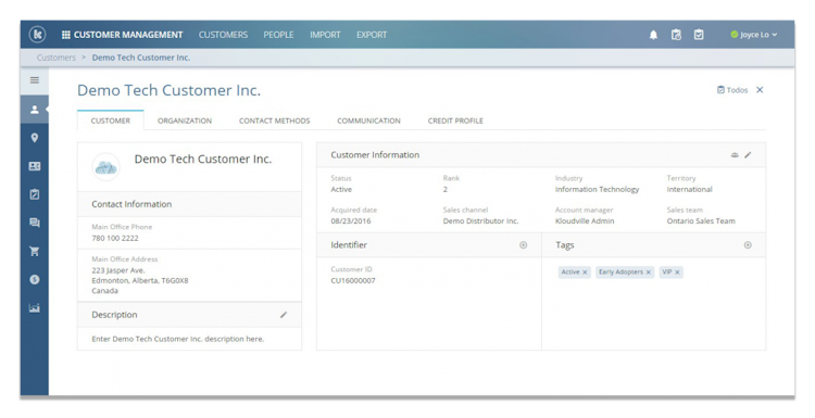 Kloudville includes a pricing management system which allows users to create a range of pricing rules and formulas, including quantity-based pricing, bundle pricing, sales, coupons, promotional discounts, and custom pricing for different locations or customer segments. Users can set up multiple payment methods and customizable terms, and process debit and credit card payments in multiple currencies. Customer issues can be received and managed across multiple channels, including email, call center, and web portal, and issues can be routed or escalated manually or automatically. Reports on customer, sales, and performance can be generated and customized, and analytics are automatically gathered to give users insights in real-time.