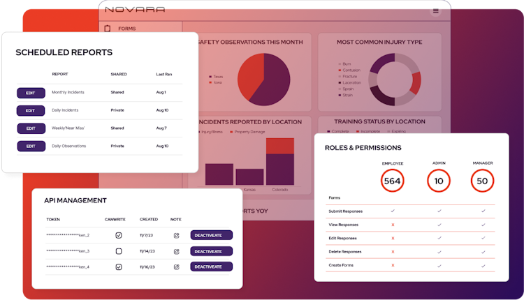 With Novara Flex, safety professionals can tailor the system to meet the unique safety and compliance needs of their business. Users can create customized forms for facility inspections and audits, incident and near miss tracking, equipment inspections, and more. Team members in the field use the Novara Flex mobile app to access the tools and information they need. The app takes advantage of mobile device features like GPS, camera, push notifications, and offline storage to streamline tasks.