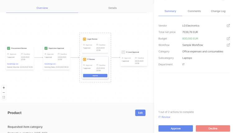 Lhotse's cutting-edge solution provides a revolution in request processes for companies struggling with chaotic request processes, maverick spending, and low transparency throughout the process. Harness the power of Lhotse's three core functionalities - forms, workflows, and seamless integration with existing systems - to tailor your request intake flawlessly, streamline approvals, engage stakeholders at the right time, and enjoy full transparency.