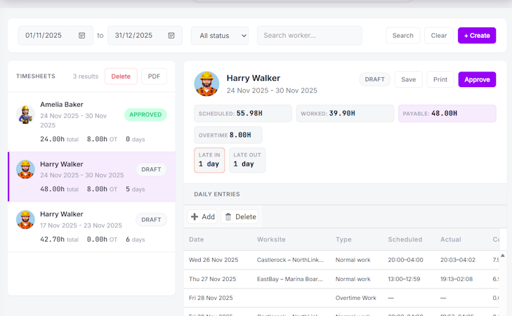 The platform comprises of various integrated modules that streamline operational workflows. The smart scheduler module facilitates task planning and assignment with calendar and board views, supports recurring templates, and enforces role based access controls. The materials cycle module lets stakeholders manage material requests, approvals, and deliveries with multi-tenant branding and digital signature capture while generating persistent PDF records. The tools cycle module administers equipment handovers and returns through serial tracking, audit trails, and handover documentation. The smart reporting module delivers real-time insights on worksite coverage, productivity, and resource utilization with export capabilities. The mobile application offers a worker centric interface for clock in and out operations and assignment viewing. The smart timesheets module transforms scheduled tasks and sign ins into approvable timesheet records organized by work type with supervisory review workflows.