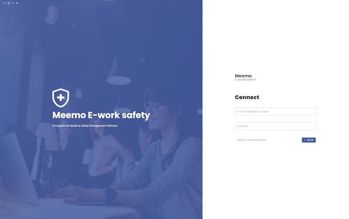 Meemo E-work safety is an occupational health and safety software that combines an employee-centric approach with workflow management based on international health and safety regulations requirements. It enables users to monitor the organization's compliance level, gain insights about workplace improvements, and focus on employee wellbeing.