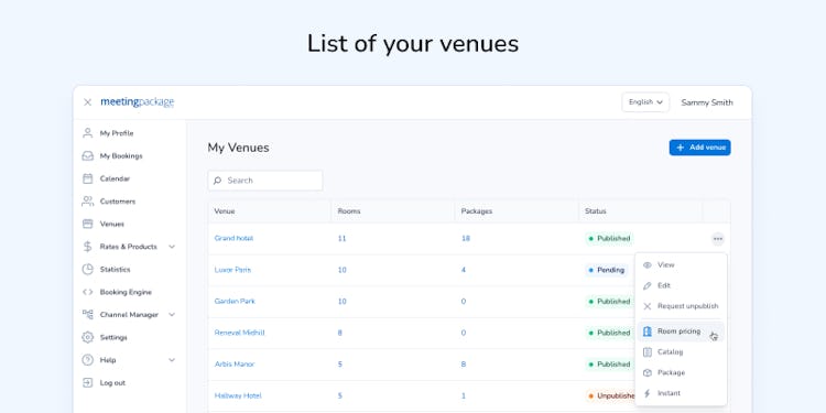 MeetingPackage helps venues sell more efficiently in all sales channels. No matter if it's offline or online. With modern automatization and robust business rules, get more business by selling more efficiently. MeetingPackage is the most integrated solution for selling meetings and events.