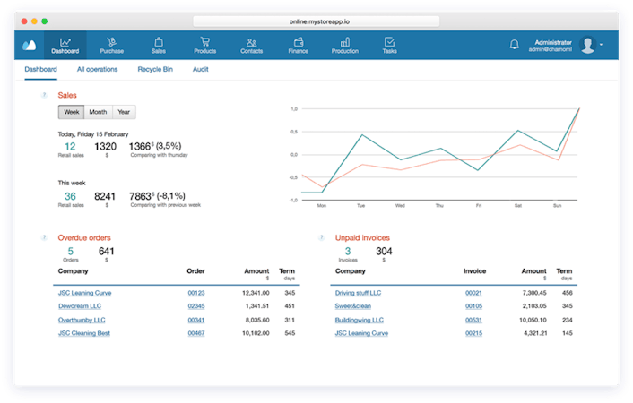 MyStore includes a customer relationship management (CRM) system, which lets managers track communications across customers and suppliers. The solution offers a range of features including inventory level monitoring, marketing management, custom fields, user permissions, contacts database, and more. MyStore provides details about clients based on completed orders, paid amount and contract period to help managers handle overdue requests and unpaid invoices.