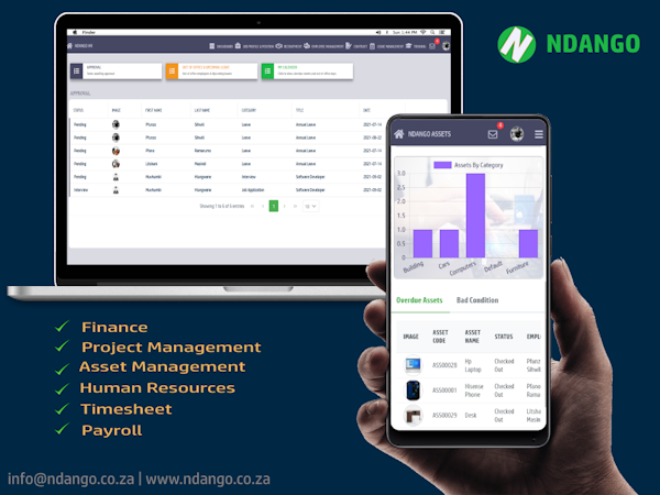Employee (HR), Asset Management, Project management, Inventory Management, Timesheets, Analytics, and Finance.