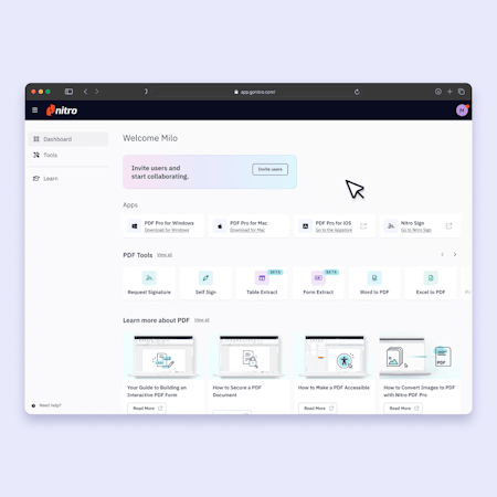 Nitro PDF provides a comprehensive suite of PDF editing tools designed for individuals, teams, and businesses seeking enterprise-grade functionality. The software enables users to create PDFs from any file format, edit existing documents, combine multiple files, apply OCR to scanned documents, and digitally sign and certify files. The platform maintains document security through password protection, redaction capabilities, and compliance with international standards including SOC 2, HIPAA, QTSP, and ISO 27001, ensuring sensitive information remains protected whether stored locally or in cloud environments. The solution enhances productivity through AI-based tools that help teams generate document summaries, answer questions in multiple languages, extract table and form data, and automatically identify and remove sensitive content through the Smart Redact feature. Users benefit from batch processing capabilities and automated workflows that eliminate manual tasks, while the intuitive Microsoft Office-style interface ensure minimal learning curves for new users. The centralized Nitro Workspace provides access to PDF installers, advanced cloud-based tools, and instant support, streamlining document management processes across organizations. Nitro PDF integrates with various business applications including Microsoft 365, MS SharePoint, iManage, AIP, Dropbox, Box, and OneDrive, allowing users to manage and collaborate on PDFs without disrupting existing workflows. The platform supports real-time collaboration through features that enable document sharing, change tracking, annotation, and permission management via the Nitro Admin Portal. For teams with two or more licenses, personalized agent support is available continuously throughout the year, complemented by access to a knowledge base, community forum, and comprehensive user guides. The solution operates across multiple platforms including Windows, Mac, and iOS, with cloud-based tools accessible through any standard web browser for maximum flexibility in remote or mobile work environments. The Nitro admin portal lets stakeholders streamline license provisioning, user management, and access control from a centralized interface, making the solution scalable for growing organizations.