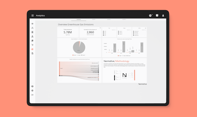 Normative empowers businesses to calculate, report, and understand their full carbon emissions across scopes 1, 2, and 3. The Normative carbon accounting engine draws on millions of data points to give businesses clear, actionable emissions insights throughout their operations and value chain. Climate Strategy Advisors from Normative help businesses understand their results, set targets, and identify reduction opportunities.