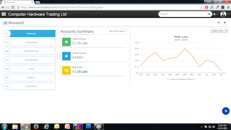 OnCloudERP includes data science which allows organizations to view business trends via actionable insights. The platform offers various types of reports such as invoice, order and shipment, predictive analysis, dimensional data view and what if analysis. The accounting feature facilitates a real-time view of cash flow with cost-center accounting, payable/receivable accounts and a dynamic chart of accounts.