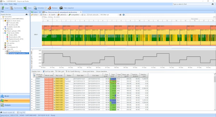 opt-Studio seamlessly combines Greycon’s world-class trim optimization expertise with the capability to generate optimized block plans and detailed schedules for all machines. With its unified, sleek, and powerful user interface, it provides fine planning functionality (schedule creation, schedule optimization, and trim optimization) with unrivaled what-if capability, now offered with an optional mobile client.