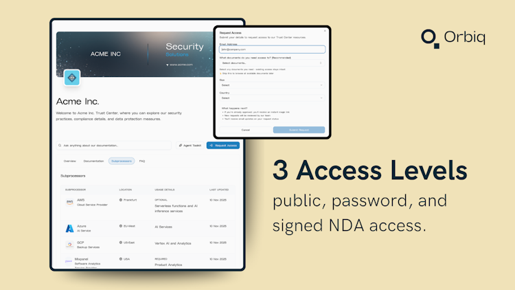 Orbiq is a trust operations platform designed for European business to business organizations. It enables centralized management of compliance, vendor assurance and stakeholder transparency through a single branded trust center. The platform supports demonstration of continuous security and regulatory alignment with frameworks such as NIS two, DORA, GDPR and other EU requirements by linking internal governance processes and systems to a public interface. The solution serves sectors such as SaaS, FinTech, HealthTech and HRTech where rigorous compliance and ongoing third party visibility form essential business considerations.