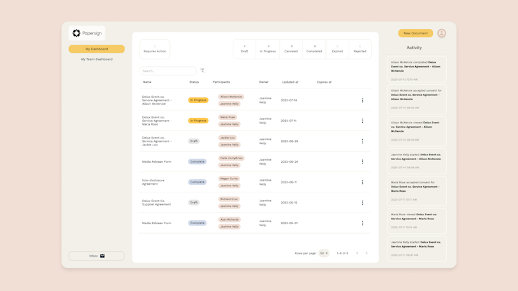 • Team Collaboration and Organization: Papersign provides a central dashboard for document management and sharing, ensuring coordination and productivity among team members.