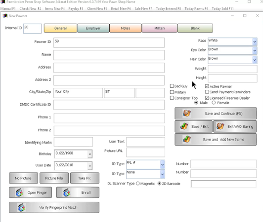 Business management software for pawn shops
