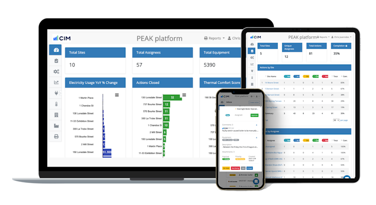 CIM's PEAK, a top-tier building analytics SaaS platform, streamlines property portfolio management by leveraging data, smart automation, and machine learning. It bolsters efficiency, sustainability, and tenant satisfaction through sophisticated monitoring, user-friendly task delegation, real-time teamwork, unified workflow, and informed decision-making based on property operations, team performance, and energy management data. Revolutionize property management and operations with the all-encompassing PEAK platform.
