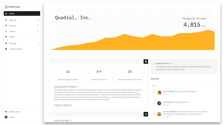 Persefoni is a carbon accounting and sustainability management platform designed to help businesses and financial institutions transform complex environmental data into audit-ready disclosures. The platform serves organizations of all sizes across various industries, enabling them to measure, report, and manage carbon footprints while meeting increasingly stringent regulatory requirements and stakeholder expectations. Persefoni caters to both corporate entities seeking to understand their operational emissions and financial institutions needing to assess financed emissions across portfolios.