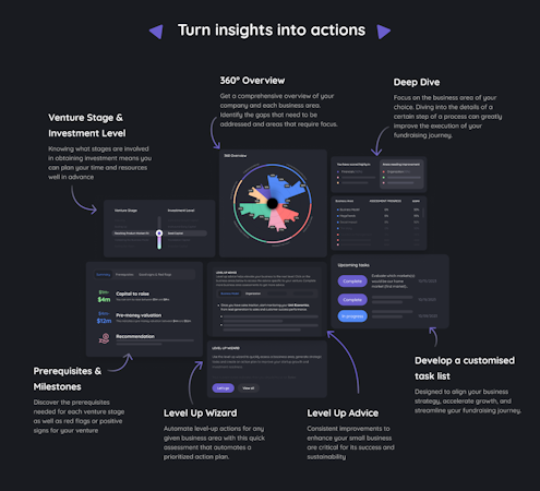Pitchago allows users to access a deeper venture analysis and actionable tips and AI-generated tasks to execute their level-up actions successfully. It helps users enhance their fundraising efforts by identifying their startup's strengths, providing valuable feedback, and streamlining financial health monitoring. Its comprehensive assessment tool identifies the startup's investability and provides valuable feedback to improve the chances of securing funding. It equips users with the knowledge and insights to excel in venture interviews.