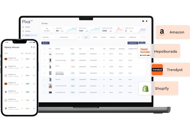 Pixa is a cloud-based commerce operations platform designed for multichannel e-commerce businesses. It connects marketplaces, online stores, ERP systems, and warehouse workflows into a centralized operational control layer.