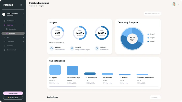 Planted is a cloud-based sustainability software that helps businesses streamline their climate action journey. The AI-based tool facilitates CO₂ footprint, identifying hotspots and areas for greenhouse reduction. It monitors official regulations with the help of carbon accounting features. It gives access to an educational resource hub and develops sustainability practices within teams.
