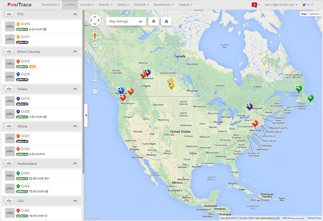 The PosiTrace platform enables administrators to track moving vehicles using Google Maps street, satellite, and terrain views, as well as monitor traffic information, set landmarks, and define geofences to optimize vehicle routes. It allows managers to generate reports on metrics including engine status, stops made en route, speeding or acceleration, duration of trips, total distance logged, and more. Plus, supervisors can monitor the maintenance statuses of vehicles, receive alerts on device tampering, and analyze cost reports on fuel quantity and consumption.