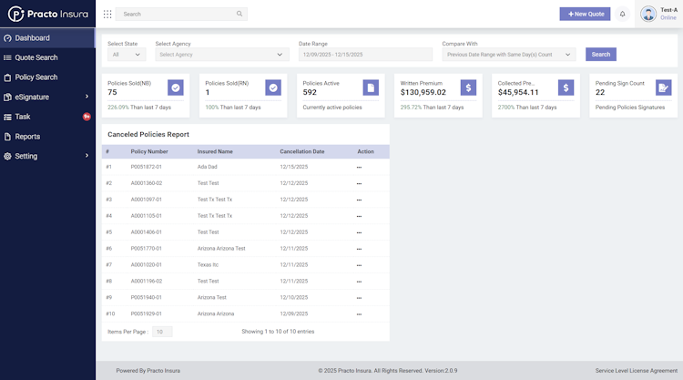 Practo Insura’s Policy Administration System (PAS) is built for P&C insurers, MGAs, and program administrators that need flexibility without the overhead of legacy core platforms. It enables teams to manage the complete policy lifecycle, from quote and bind to endorsements, renewals, cancellations, and reinstatements, within a single configurable environment.