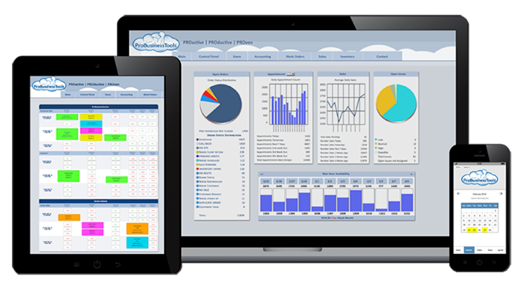 ProBusinessTools is a web-based service management solution geared towards managing service technicians out in the field. Consisting of several integrated modules, ProBusinessTools allows users to track, update and summarize customer sales data with wholly customizable reporting and dashboard tools throughout. Schedule appointments and jobs with drag and drop, calendar-based editing while monitoring real time field data and issuing new schedule information to technicians via email or SMS. Additional modules include inventory management for tracking consumables or serialized equipment via bar code scanning, spreadsheet or manual entry. The recurring billing system facilitates the acceptance of payments from multiple sources, running batch transfers of monthly credit and more.