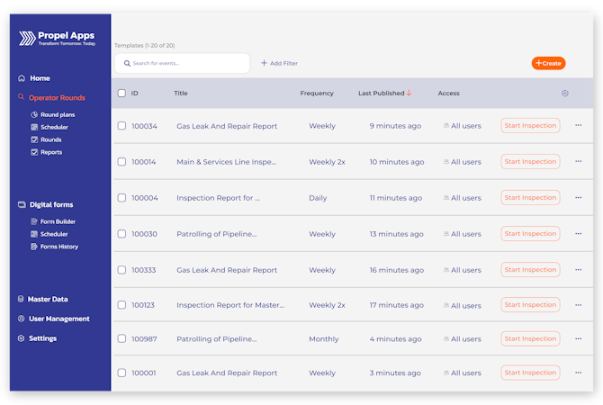 Propel Apps Operator Rounds's features