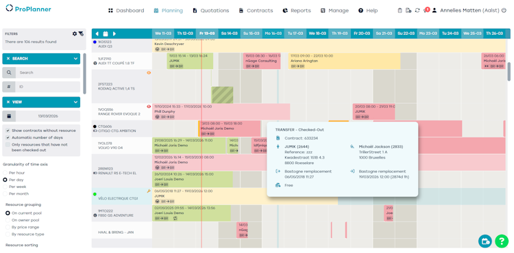 With ProPlanner, teams get full visibility and control from the moment a vehicle is reserved until it is returned. The planning view shows real time availability, location and status, which helps businesses improve utilization and reduce unnecessary downtime. Every vehicle can be deployed in the most profitable way, which increases the return on investment for the entire fleet.