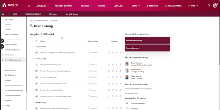 The system delivers integrated modules covering process management, document control and continuous improvement workflows. Visual process mapping supports multi-level overviews and detailed flowcharts that can be modeled, published and version controlled to ensure that all stakeholders access current procedures. Centralized document management includes review and approval workflows that maintain audit-compliant records of all changes and versions. The continuous improvement module enables submission of improvement suggestions and reporting of deviations within the native environment, with structured workflows that assign responsibilities and document implementation measures.