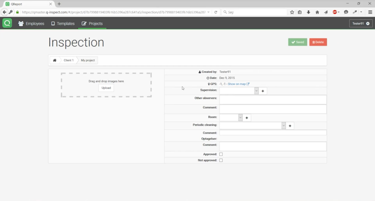 Reports are generated in a editable text document on the web, including audio files placed in the document so that further processing, if necessary, can be executed by another user or colleague. Besides the QReport app itself, the system is supported and complemented by a hosted software package (cloud solution), QMaster, where reporting, design and customization of inspections and reports can be made.