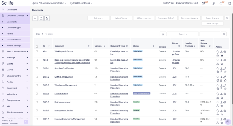 The Scilife platform is a versatile tool capable of managing the diverse lifecycle stages in Life Sciences companies. It’s purpose-built and fully validated according to GAMP5 and 21CFR11 to comply with the rigorous demands and compliance regulations of Pharma, Biotech and Medical Device companies.