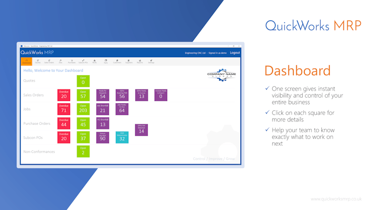 QuickWorks MRP is manufacturing software designed to help small and medium-sized manufacturers improve productivity, reduce costs, and simplify quality compliance. The software brings together estimating, order processing, inventory, purchasing, production planning, and quality control into one integrated system.