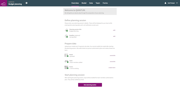 QVANTUM is a cloud solution for agile corporate planning. The solution provides companies with valid planning data - automated, cross-departmental, and with the highest degree of user-friendliness. QVANTUM, based on automatically available planning data and figures from all company areas, can help create valid company plans. These plans are not just based on past data but data that comes directly, automatically, and from decentralized departments.