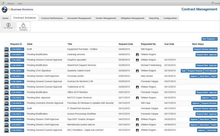 Built in wizards provide flexibility to modify your workflows and with role based permissions users can broaden participation. Being specifically designed for GovCon, R3 Contract Management brings everything together and eliminates gaps in contract management.