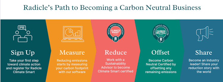 Radicle offers next generation solutions that help businesses compete and prepare for the future by addressing climate change. Radicle makes setting carbon reduction targets simple by providing access to a web-based software solution that helps businesses measure, manage, report and verify their emissions.