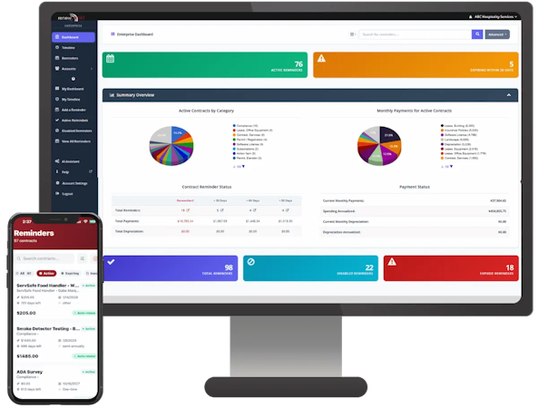 RenewAlert is contract reminder software that automates deadline tracking for vendor contracts, subscriptions, permits, compliance filings, and certifications across single or multi-location business operations. The platform serves as a centralized compliance management system for organizations that manage recurring operational deadlines in industries such as hospitality, franchise operations, property management, office equipment dealerships, fleet operations, and small business sectors. RenewAlert replaces spreadsheet-based tracking with automated email notifications that are dispatched before critical deadlines expire, preventing auto-renewals, compliance violations, and operational lapses.
