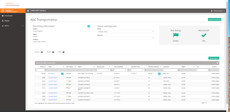 RiskRate is an enterprise third party risk management and vendor due diligence solution enabling organizations to on-board, screen, and monitor third parties. The centralized, configurable platform aims to assist businesses with deploying and managing an effective risk-based program to reduce third party bribery, corruption, and other risk concerns.