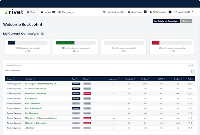 With features like quizzes, drill-downs, and conditional formatting, Rivet allows efficient and accurate collaboration, ensuring tasks are completed on time. The platform also offers an inbox feature, facilitating direct communication among team members.