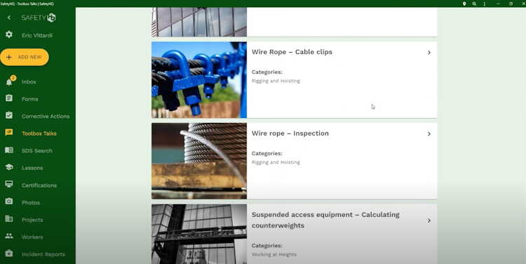 SafetyHQ comes with a customizable toolbox talks feature which allows safety meetings to prioritize safety on the job sites by discussing hazards and safe work practices.