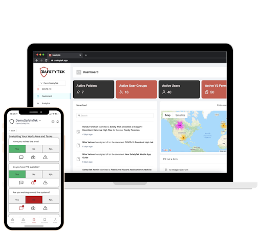 SafetyTek's widely adopted, cloud-based EHS software gives businesses the automation and data insights needed to proactively protect employees' health and safety. With the simple-to-use mobile app and web platform, you can motivate workers to complete safety documentation on time, keep up with regulatory compliance such as conducting external audits, supplying documentation requests to authorities, and reporting incidents to workers compensation, all while delivering value to stakeholders.
