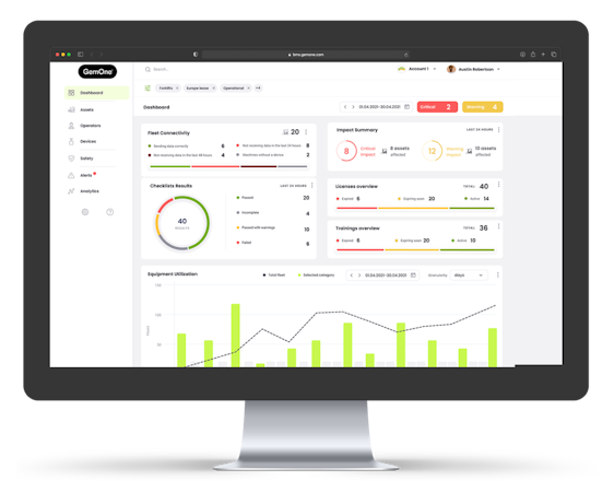 GemOne’s systems closely monitor machines and present the captured data in clear and personalised reports. Companies will know how their fleet is being used at any time and be able to review details of machine usage and deploy that information for optimisations.