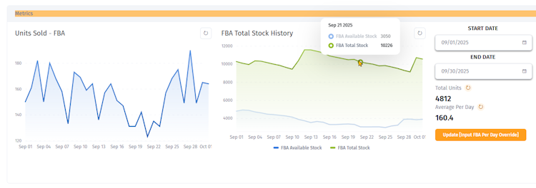 The software features a suite of inventory management tools including SKU-level forecasting that accurately predicts demand based on historical sales data. Its real-time dashboard provides visibility into sales velocity trends, comparing current performance against previous periods to identify patterns and opportunities. SKU Compass offers automated purchase order generation based on forecast data, ensuring optimal inventory levels that balances stockout prevention with storage cost minimization. Additional features include manufacturing stock estimation, FBA inventory planning, sales spike protection, automated reorder alerts, and specialized tools for Amazon Warehousing & Distribution storage and Subscribe & Save management.