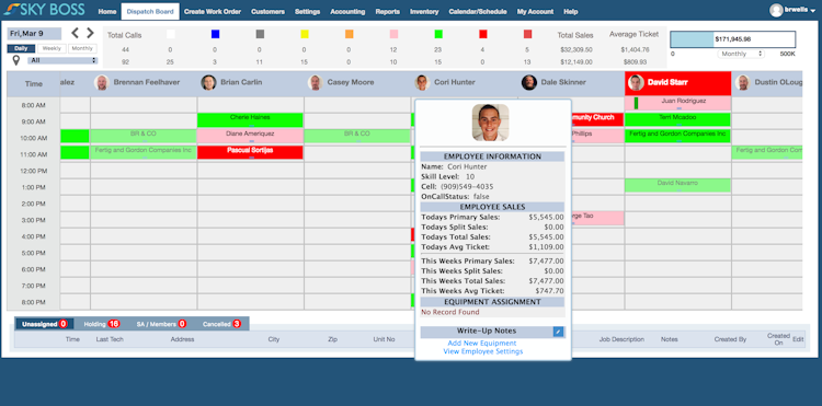 SkyBoss is a cloud-based management solution for service dispatching businesses who deploy staff / technicians out to customers within the field. Typically geared to suit the needs of the plumbing, electrical and HVAC trades, the software is designed to cater for both the back office and dispatch center, along with mobile platform support for remote use. Features include full scheduling capabilities organized within an intuitive drag and drop calendar that immediately updates everyone on where they should be, which customer work orders have been assigned and which technicians are still available. Orders are allocated according to the right skill levels, detailing paperless instructions, tracking progress and also issuing optimized route plans that answer calls quicker and at lower cost. Plotting technician locations on job site proximity maps, hub administrators or call center operators can view a visual scheduler fully integrated with GPS software to track and efficiently direct staff as they move.