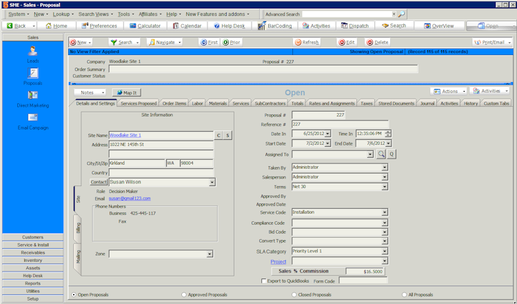 The sales prospecting module provides users with comprehensive tools for staying on top of prospects and proposals, and helps with tedious tasks such as compiling daily and weekly reports. Contact information is organized and easily accessible for tracking opportunities, sales leads, bids and proposals.