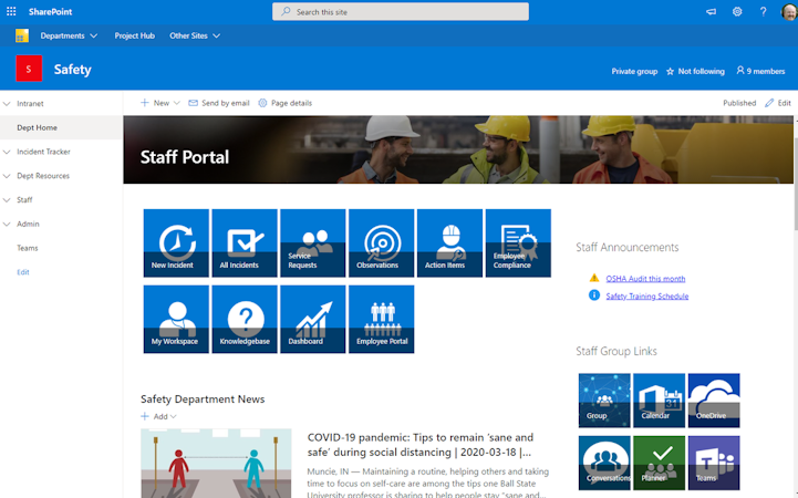 By integrating seamlessly into your existing Microsoft infrastructure, SP Safety enables teams to manage hazards, track incidents, automate reporting, and ensure regulatory compliance—all within the familiar Microsoft 365 environment. Safety management becomes part of the day-to-day workflow, increasing adoption, consistency, and accountability across departments.