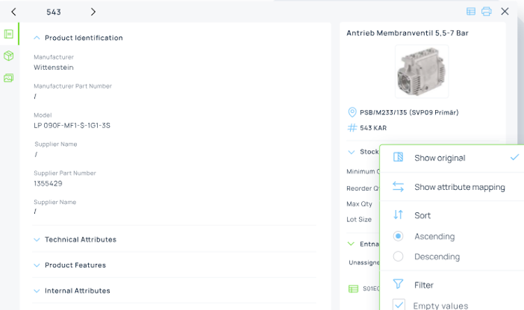 • It helps with the reduction of stock levels and ongoing purchases through master data deduplication.
