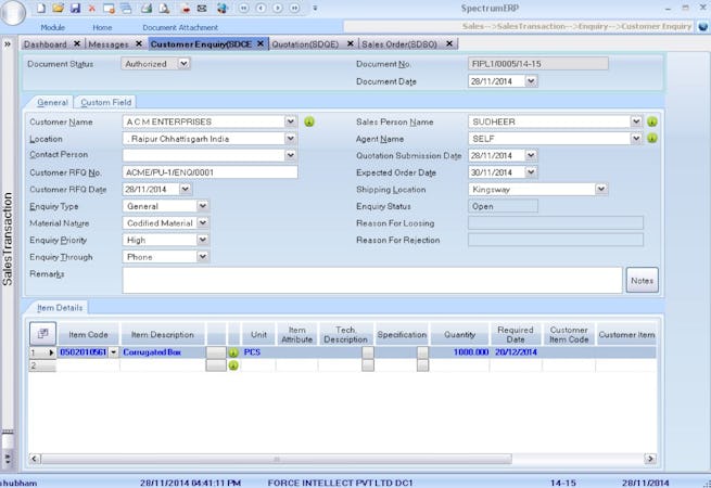 Spectrum ERP is an enterprise resource planning (ERP) designed to help businesses in the manufacturing industry. The platform offers mobile applications and business intelligence capabilities for small to midsize organizations.