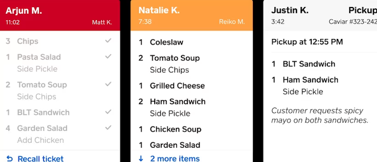Square KDS’s user interface