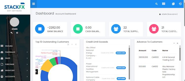 StackFX ERP is a cloud-based enterprise resource planning solution that unifies customer relationship management, sales, purchasing, inventory management, finance, human resources and payroll functions within a centralised platform. It resolves operational challenges caused by disconnected systems by providing real-time visibility into stock levels, pricing, delivery schedules, order histories and invoicing data from a single database. The modular architecture allows custom configuration of functionality to match specific operational requirements across industries such as trading, manufacturing, distribution, contracting and textiles.