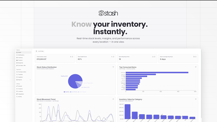 Stash is a cloud-based inventory management platform that provides real-time visibility into stock levels across single or multiple locations. The solution centralizes oversight of inventory by consolidating data into a unified dashboard and replacing manual spreadsheet processes with automated workflows. It streamlines inventory control for retail outlets, coffee shops, food and beverage establishments, and franchise operations that require structured management without unnecessary complexity.